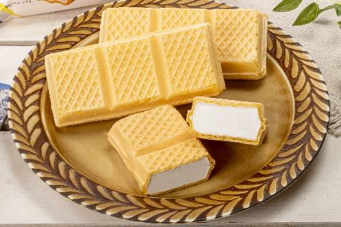 もなか(国内製造)、水あめ、脱脂粉乳、植物油脂、砂糖、砂糖混合異性化液糖、デキストリン、果糖 / 加工でんぷん、安定剤(増粘多糖類)、乳化剤、アナトー色素、香料、甘味料(アセスルファムK)、(一部に卵・乳成分・小麦を含む)