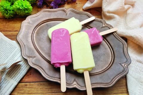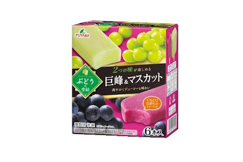 1箱で2種類のぶどうを味わえるなめらか食感のアイスバーです。