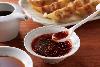 野菜のシャキシャキ感と甘み、肉の旨味が美味しいとんきっき餃子。辛旨辣油をタレに加えれば、ピリッとした辛さで更に美味しく!