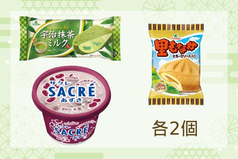 和風のスイーツアイス「里もなか」「サクレあずき」「宇治抹茶ミルク」を各2個ずつ詰め合わせました!