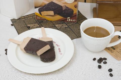 【香るCaféカフェラテ】深煎り焙煎コーヒー豆を混ぜ込んだカフェラテ味チョココーチングでカフェラテアイスをコーチングしたアイス。深煎り焙煎コーヒー豆のカリッとした食感がアクセントです。